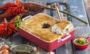 Tabuleiro de atum com maionese no forno