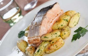 4 postas de salmão600g de batatinhas novas pequenas