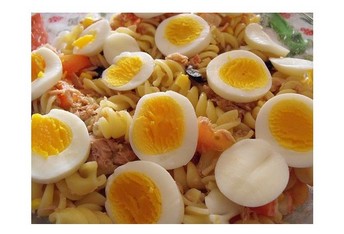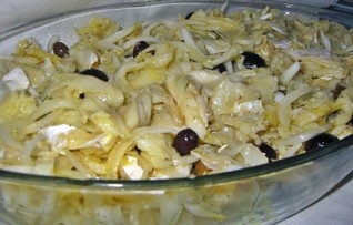 Bata as claras em castelo e depois envolva-lhes a restante maionese e a salsa seca. Coloque o preparado anterior numa travessa, previamente untada com manteiga e polvilhada com pão ralado, espalhe as rodelas de azeitona, previamente passadas por água e escorridas, por cima, cubra com as claras e polvilhe com um pouco de pão ralado. Leve ao forno, pré-aquecido a 180ºc, durante 20 minutos. Sirva quente, com decoração a gosto.~