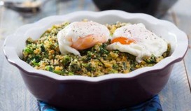Migas de grelos com ovos escalfados