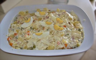 Tabuleiro de atum com maionese no forno