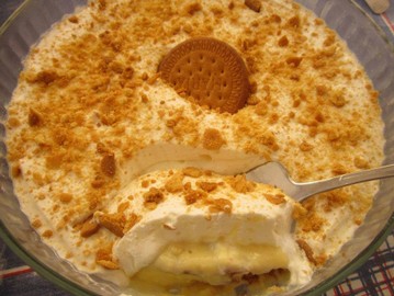 Deite, para uma forma, camadas alternadas de chantilly e de bolacha, sendo que a última camada deve ser de chantilly. Leve ao congelador até ficar bem firme. Depois mergulhe o fundo da forma em água a ferver, desenforme para um prato largo e leve de novo ao congelador.